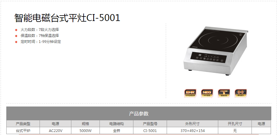 智能电磁台式平灶CI-5001